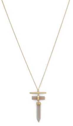 14 Karat Gold Plated Pencil Cut Gray Moonstone Drop Necklace